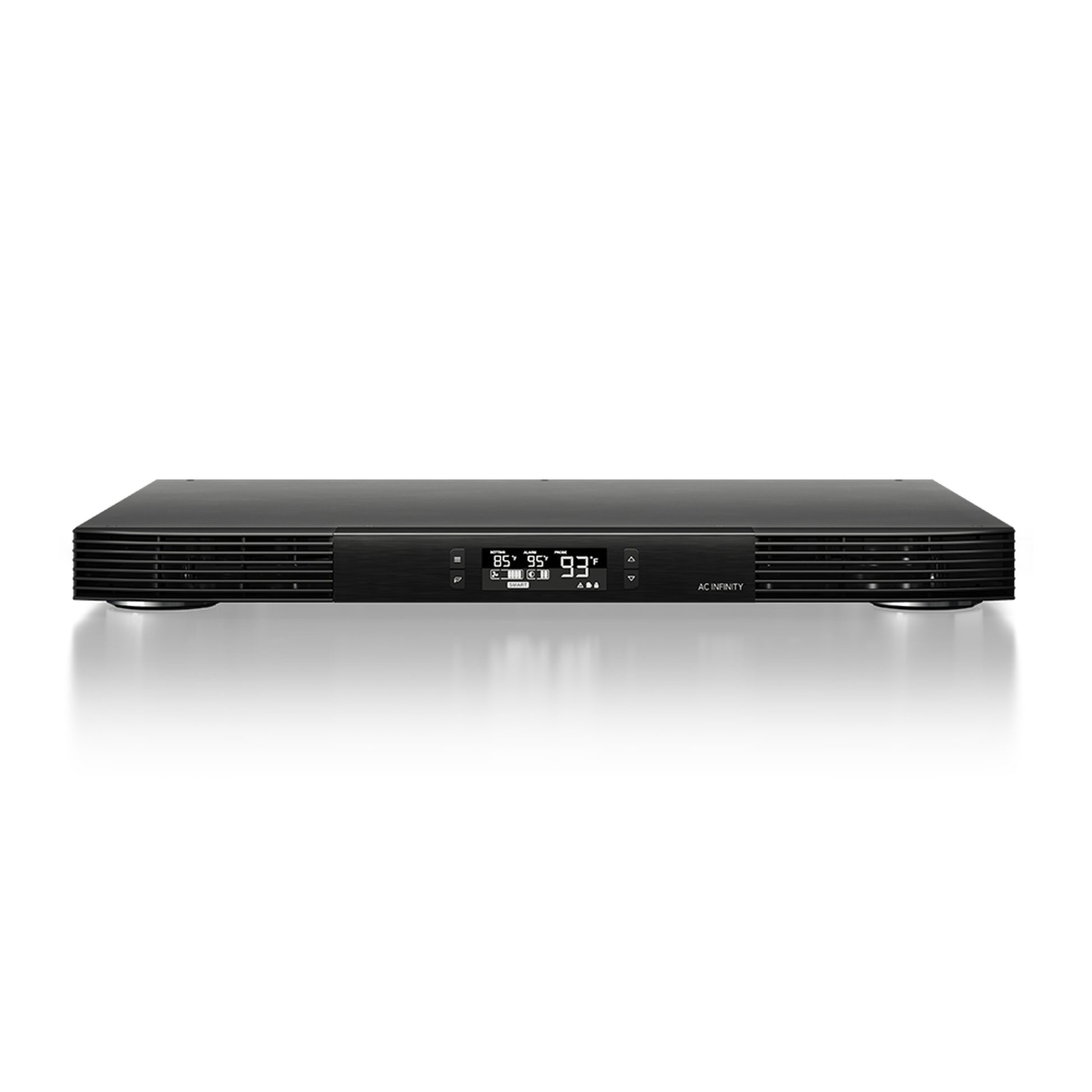 Programming includes an easy-to-use thermostat and a SMART mode that automatically adjusts the fan’s speed to react to varying temperatures. Additional features include alarm alerts, fan failure triggers, power savings setting, display lock, and backup memory. Six fan speeds are available with three screen brightness settings. Behind the unit are ports that can control up to six individual AC Infinity AIRPLATE Cabinet fans and MULTIFAN Component fans.